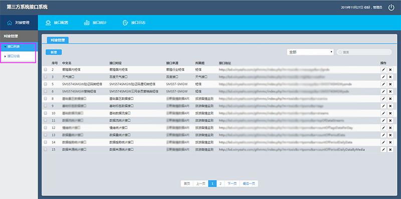 可將接口和接口組進(jìn)行新增、修改、刪除等管理操作,同時(shí)對(duì)應(yīng)好接口來(lái)源和接口分組的信息