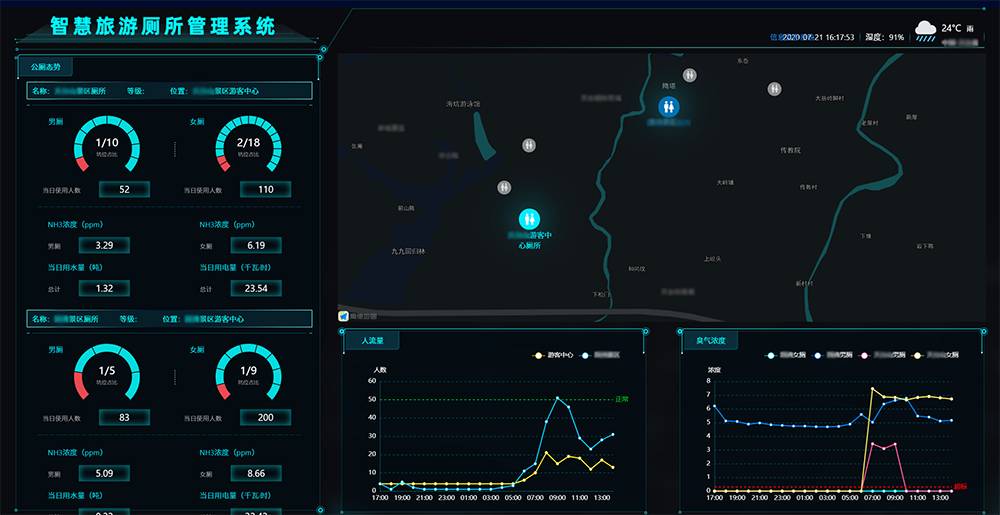 智能廁所系統(tǒng)基于4G、WIFI等無(wú)線通信技術(shù),通過智能網(wǎng)關(guān)、無(wú)線設(shè)備,無(wú)線采集設(shè)備無(wú)線連接及控制設(shè)備,搭載相應(yīng)的設(shè)備,如顯示屏、攝像頭、溫濕度傳感器、氣體傳感器一鍵告警、智慧照明等數(shù)據(jù)傳至云平臺(tái),創(chuàng)建公廁管理數(shù)據(jù)庫(kù),實(shí)現(xiàn)公廁環(huán)境、能耗、運(yùn)維等方面的實(shí)時(shí)監(jiān)管平臺(tái),為實(shí)現(xiàn)公廁的智能化應(yīng)用管理提供數(shù)據(jù)支撐。