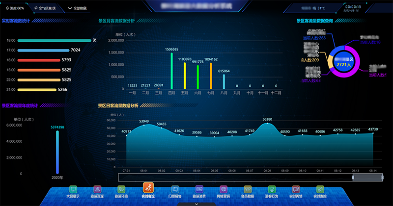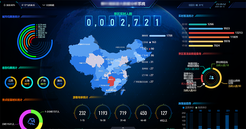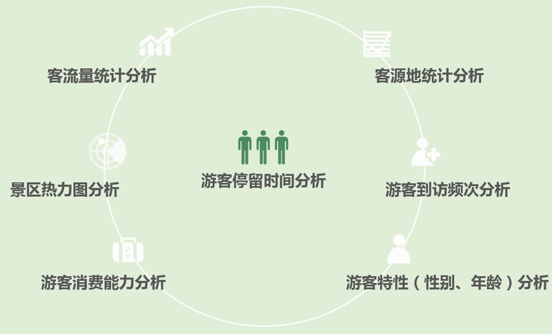 通過對接景區(qū)門禁票務(wù)數(shù)據(jù)、視頻監(jiān)控數(shù)據(jù)、電子商務(wù)數(shù)據(jù),車輛識別數(shù)據(jù)、WIFI探針數(shù)據(jù)、客源地信息、熱力圖信息,分析景區(qū)客流量信息,對游客的年齡層次、來源省份和地市構(gòu)成比例、在景區(qū)的停留時間、各景點客流量等信息進行周期性統(tǒng)計和挖掘,并與歷史數(shù)據(jù)進行對比分析,為景區(qū)旅游業(yè)的科學(xué)管理、游客的旅游體驗和面向客源地的精準營銷提供數(shù)據(jù)支撐。