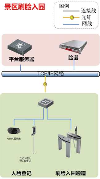 在景區(qū)出入口(檢票口)設(shè)置景區(qū)二次入園、刷臉入園、本地游客入園等專用通道,并在景區(qū)出口相關(guān)位置設(shè)置人臉登記臺。游客進入時通過刷臉實現(xiàn)自動放行,刷臉入園專用通道設(shè)置時,需考慮通道寬度等問題。一般情況下,可選用三輥閘設(shè)備,也可根據(jù)情況選擇翼閘或擺閘。