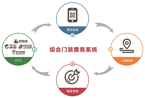 云平臺(tái)與眾多分銷商進(jìn)行對(duì)接,分銷商訂單自動(dòng)發(fā)送到云平臺(tái),由云平臺(tái)自動(dòng)轉(zhuǎn)發(fā)訂單到相應(yīng)景區(qū),并且由云平臺(tái)向游客發(fā)送手機(jī)二維碼門票信息,游客憑借有效證件到景區(qū)取票(人工窗口或者自助機(jī)),或者憑手機(jī)二維碼直接通過閘機(jī)驗(yàn)票進(jìn)入景區(qū)。