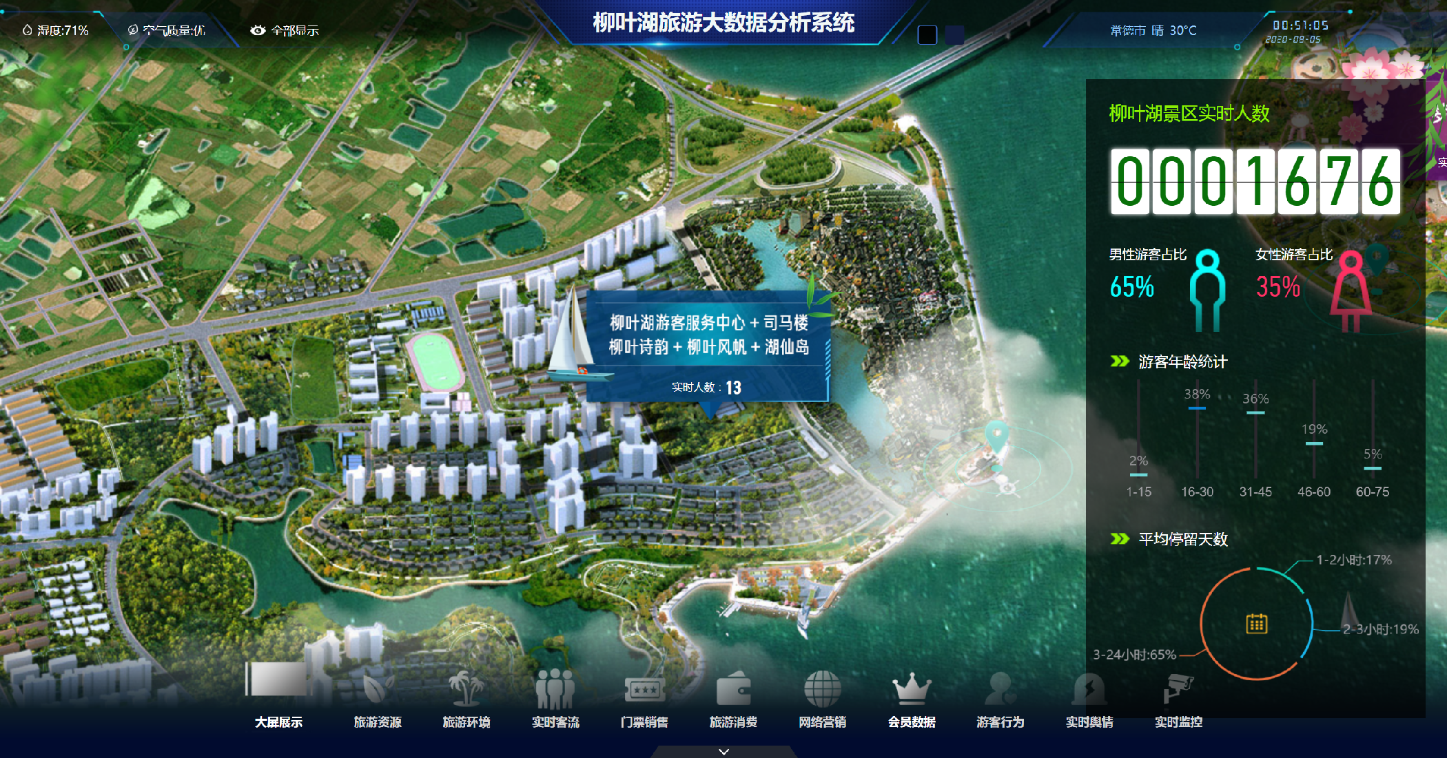 通過一系列軟硬件平臺的開發(fā)部署,柳葉湖智慧旅游能初步實現(xiàn)行業(yè)監(jiān)測、客流分析、指揮調(diào)度、游客服務(wù)等功能。