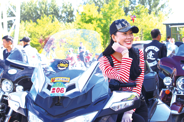 △ 2018年8月5日,“漫游之旅”——2018(通遼)第三屆科爾沁500公里風(fēng)景大道自駕游活動(dòng)啟動(dòng),圖為游客在機(jī)車上拍照留念。陳鳳攝