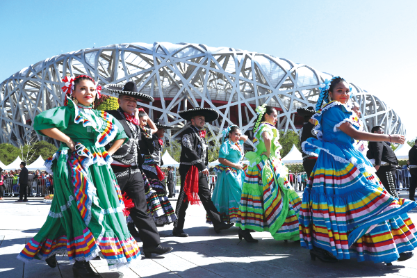 △ 2018年10月1日,第二十屆北京國際旅游節(jié)在北京奧林匹克公園慶典廣場(chǎng)拉開帷幕,國內(nèi)外團(tuán)隊(duì)的精彩演出令現(xiàn)場(chǎng)游客叫好。盛佳鵬攝