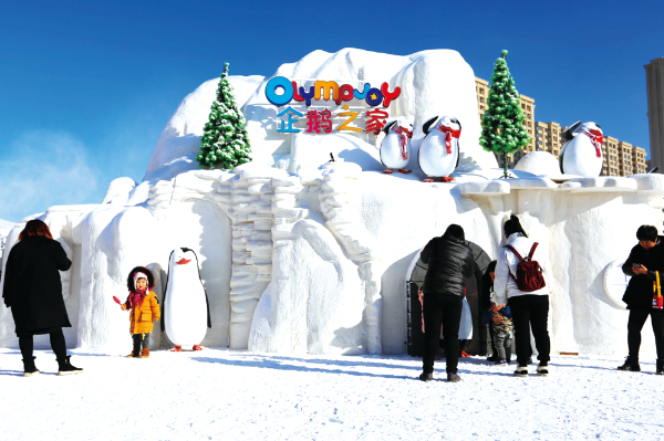 △ 2018年12月23日,沈陽市首屆丁香湖奧悅冰雪嘉年華現(xiàn)場(chǎng),眾多游客賞雪玩雪,拍照留念。劉寶成攝