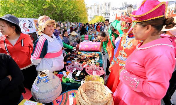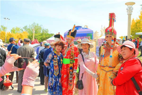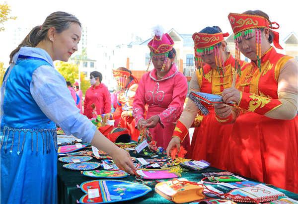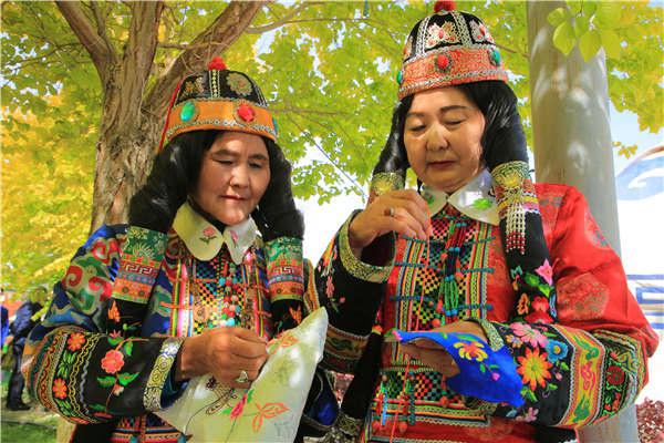 華麗的民族服飾,既能欣賞又能體驗(yàn),令在場(chǎng)游客們紛紛對(duì)博湖刺繡藝術(shù)之美夸贊不已,一些觀眾還興致勃勃地試穿刺繡蒙古族袍,用相機(jī)、手機(jī)定格下美好的瞬間。