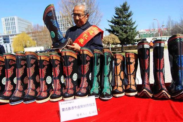 “我的手藝不保密,這門手藝不能失傳了啊。”76歲的吳潤達(dá)老人是蒙古族香牛皮靴手工制作技藝傳承人。吳家制作蒙古靴的歷史久遠(yuǎn),到吳潤達(dá)已是第5代。