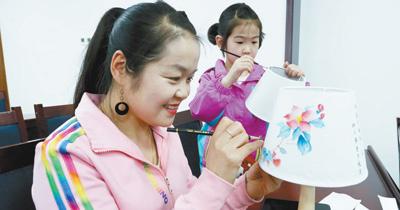 游客在甘肅張掖市博物館手繪燈罩,感受傳統(tǒng)手工藝文化。