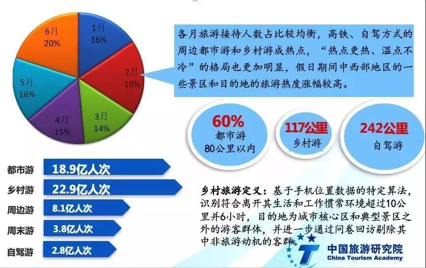研究院和電信旅游數(shù)據(jù)聯(lián)合實(shí)驗(yàn)室數(shù)據(jù)顯示,上半年各月旅游接待人數(shù)占比分別是16%、19%、15%、15%、16%、20%。全國(guó)范圍內(nèi)都市游和鄉(xiāng)村游的出游人數(shù)達(dá)到18.9、22.9億人次,周邊游、周末游、自駕游出游總?cè)藬?shù)分別達(dá)到8.1、3.8、2.8億人次。