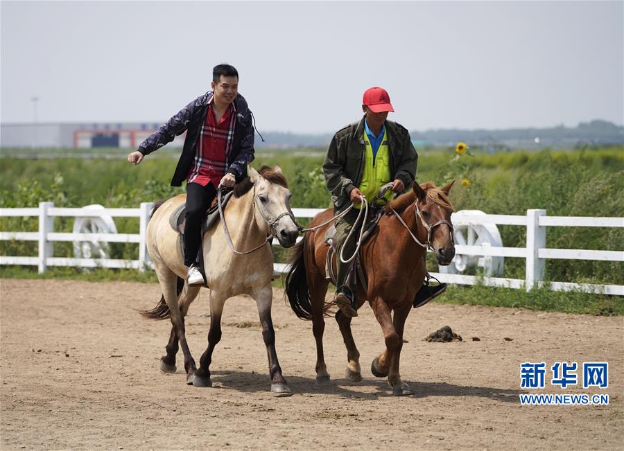 8月5日,游客在河北省張北縣中都草原度假村游玩。 近年來,河北省張北縣深度整合草原、鄉(xiāng)村、農(nóng)業(yè)等資源發(fā)展全域旅游。目前該縣已有14個(gè)鄉(xiāng)鎮(zhèn)參與到旅游產(chǎn)業(yè)中,旅游從業(yè)人員達(dá)5.2萬人,實(shí)現(xiàn)了旅游富民興縣。 新華社記者 邢廣利 攝