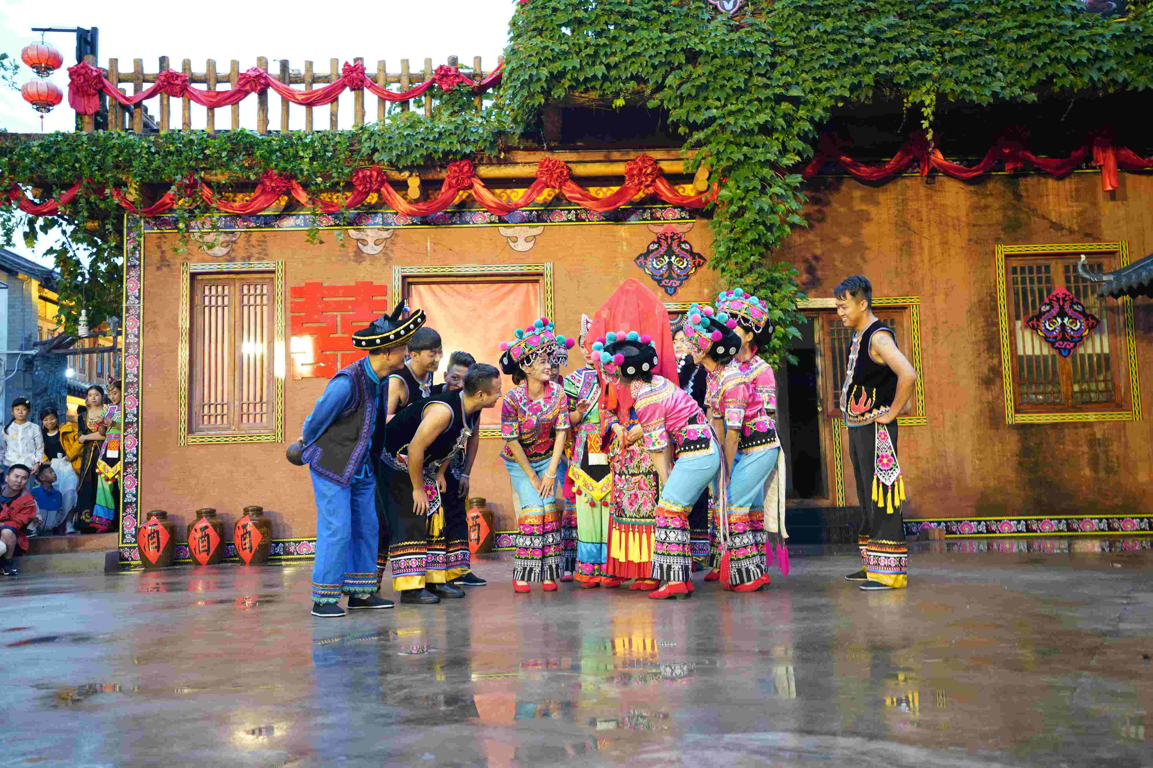 據(jù)記者了解,此次火把節(jié)還將彝家婚俗表演重新編排整理升級(jí)為“彝家婚俗2.0”,不僅根據(jù)彝族傳統(tǒng)婚俗搭建了舞臺(tái)布景,同時(shí)也在游客互動(dòng)體驗(yàn)上做了更多文章。比如,通過(guò)送荷包選出互動(dòng)的“新郎”參與表演,讓游客在歡笑間感受彝鄉(xiāng)千年的婚嫁傳統(tǒng),以身臨其境的方式傳承活化彝族文化。