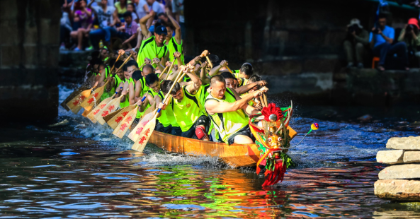 值得一提的是,在疊滘村,據(jù)當?shù)卮迕窠榻B,“本地人不是以有一輛豪車為榮,而是以擁有一艘龍舟而自豪?!睗庥舻凝堉畚幕諊由?“一鼓三轉(zhuǎn)彎”的驚險“龍舟飄移”,也吸引了眾多游客前往觀看。
