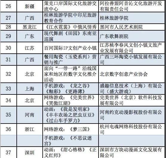 附件:文化和旅游部2019年度“一帶一路”文化產(chǎn)業(yè)和旅游產(chǎn)業(yè)國際合作重點項目公示名單