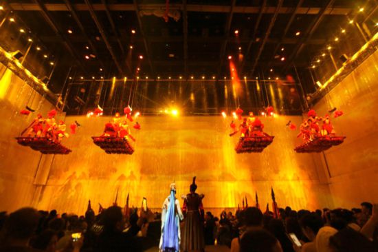 《沙坡頭盛典》以中衛(wèi)沙坡頭“桂王城”“沙坡鳴鐘”“沙掩王城”“淚泉”等古老傳說為故事原型,首創(chuàng)沉浸式情境體驗,通過運用全息影像、AR技術(shù)應(yīng)用、玻璃晶球、巨型升降平臺等9D舞美前沿科技,實現(xiàn)了從空間、科技、文化乃至藝術(shù)表現(xiàn)形式等方面的“七大”創(chuàng)新突破,推動寧夏文化與旅游、科技的深度融合,助推中衛(wèi)乃至寧夏文化旅游和云產(chǎn)業(yè)的全面發(fā)展,推動全域旅游快速發(fā)展。