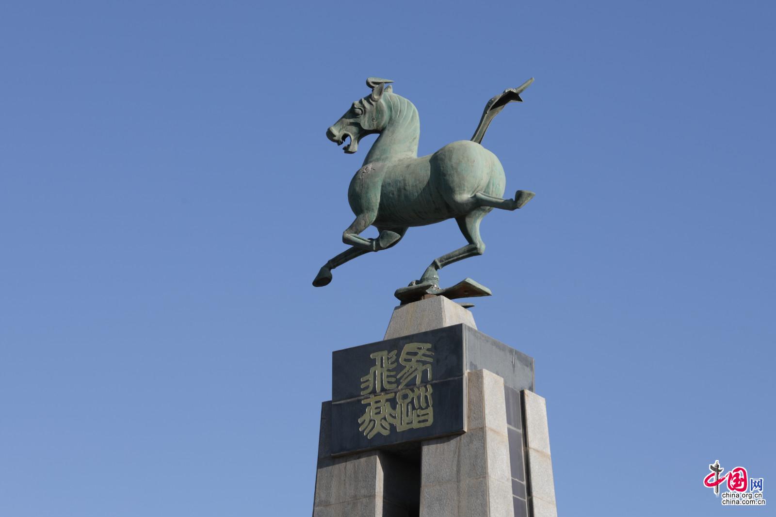 武威雷臺景區(qū)中國旅游標志“馬踏飛燕”雕塑。中國網(wǎng)記者胡俊 攝