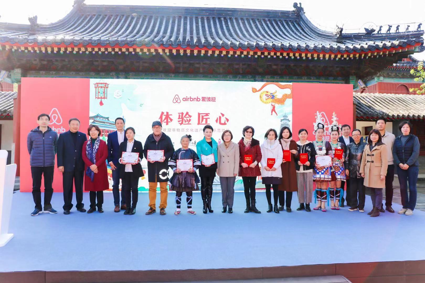 10月29日, Airbnb愛彼迎“體驗(yàn)匠心”第一階段非物質(zhì)文化遺產(chǎn)旅游示范項(xiàng)目閉幕儀式在北京舉行,世界旅游聯(lián)盟秘書長劉士軍、北京市東城區(qū)副區(qū)長趙凌云、愛彼迎中國總裁彭韜以及來自各地的非物質(zhì)文化遺產(chǎn)傳承人等嘉賓出席了活動(dòng)。