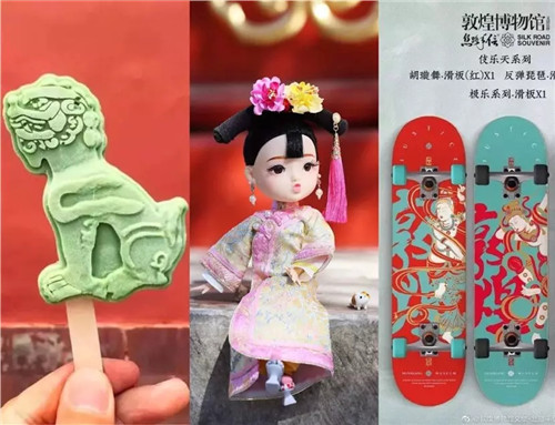 我們了解到“上新了文創(chuàng)旗艦店”中的產(chǎn)品:售價4199元的手表,2899元的真絲睡袍,799元的真絲圍巾……相比較價格比較平民的故宮文創(chuàng),這個定價不低。而流量也開始入局,今年9月,敦煌博物館文創(chuàng)攜手文創(chuàng)公司一起推出一款飛天滑板,首先送給當(dāng)紅流量明星王一博“定制版”,該事件前后就上了三、四次微博熱搜。而后產(chǎn)品發(fā)起眾籌,預(yù)計眾籌金額為2萬元,最終交易金額達(dá)到390萬元,流量的帶貨力可見一般。