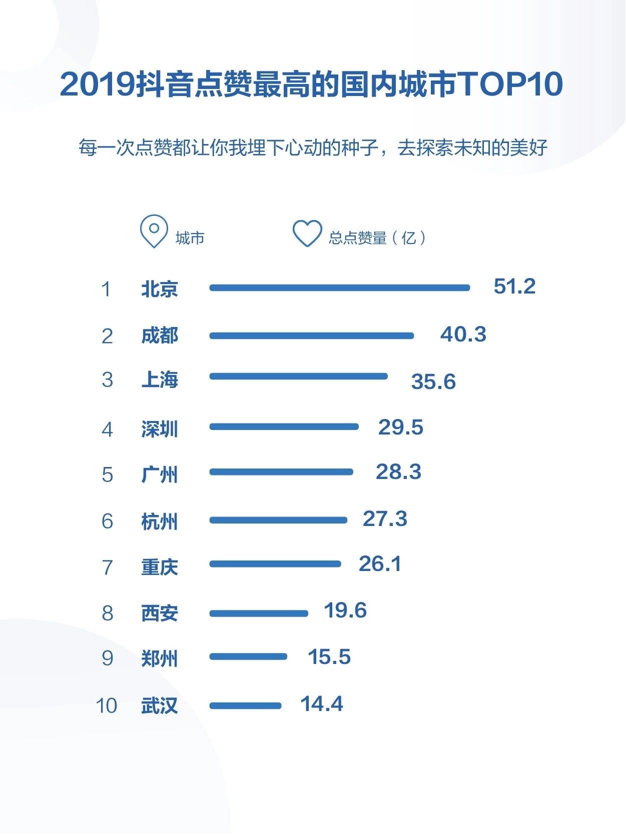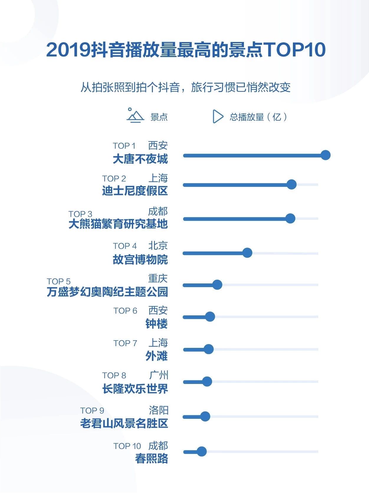 從過去拍張照片到現(xiàn)在“拍個短視頻”,人們的旅行習(xí)慣已悄然改變,這種習(xí)慣催生了文旅行業(yè)“打卡經(jīng)濟”。根據(jù)抖音發(fā)布的數(shù)據(jù),2019年,抖音用戶全球打卡6.6億次,最受歡迎的國外城市是曼谷、首爾和東京,被點贊最多的國內(nèi)城市是北京、成都和上海。根據(jù)城市形象視頻點贊量,北京是2019年度“抖音之城”,收獲51.2億次點贊。