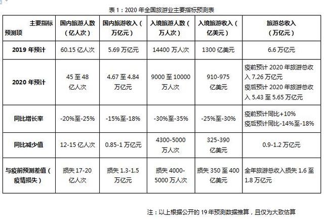 2003年全國入境旅游人數(shù)9166. 21萬人次,在部分省市受沖擊不大的情況下,全國入境總量仍比 2002年下降6. 38%。如今,在全覆蓋國的一級響應和世界衛(wèi)生組織(WHO)認定的雙重疊加下,將對入境游特別是外國游客信心造成重大影響,上半年取消來華旅游的人數(shù)會大幅升高。預測2020全年入境旅游人數(shù)將降至9000萬至1億人次左右,同比2019年下降約30%-35%。入境旅游收入損失預計在350至400億美元左右。