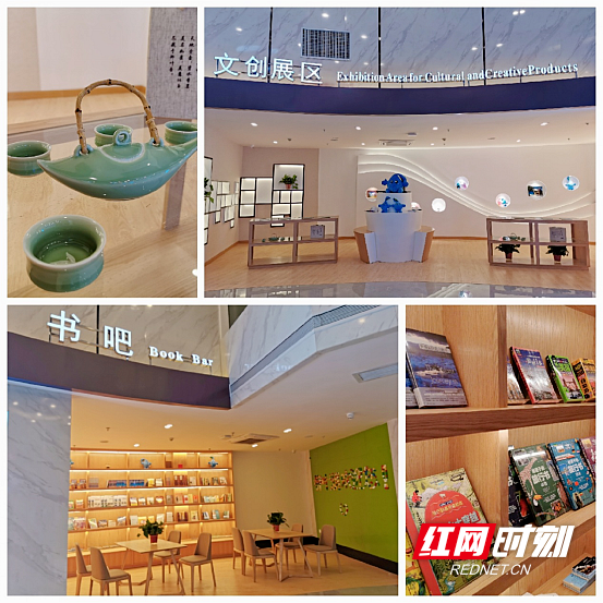 文創(chuàng)展區(qū)展出了榮獲過全國(guó)旅游商品大賽金獎(jiǎng)的柳葉壺、活潑可愛的吉祥物柳柳家族玩偶、精巧的司馬樓材料拼貼作品、柳葉湖VI系列T恤、帽子、雨傘等精美的文創(chuàng)產(chǎn)品,這些產(chǎn)品展示了柳葉湖精巧的文創(chuàng)設(shè)計(jì),讓游客更直觀地了解柳葉湖,愛上這“城中大海 度假天堂”。旅游書吧內(nèi)還擺放了柳葉湖文化旅游書籍、孤獨(dú)星球系列旅游書籍、《旅游大百科》、《中國(guó)國(guó)家地理》、《侶行》等書籍,在游客中心內(nèi)用心打造一個(gè)充滿書香的舒適空間。