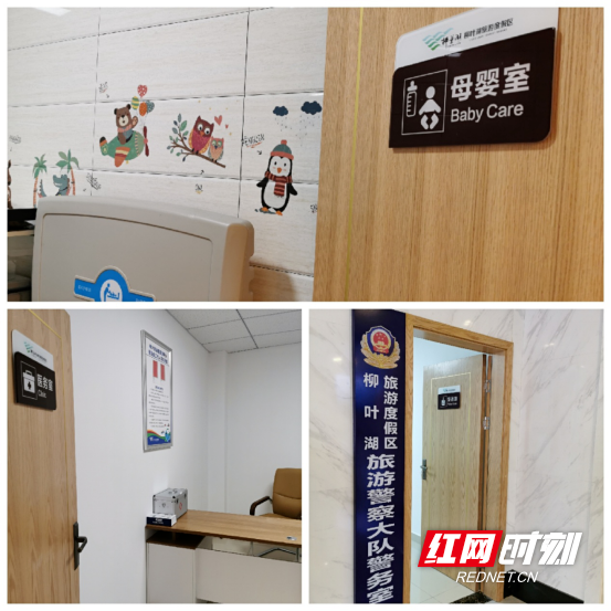 游客中心內(nèi)設(shè)置有休憩桌椅,可同時(shí)滿足40位游客的休憩需求;設(shè)置了警務(wù)室、醫(yī)務(wù)室和母嬰室,并設(shè)有自助查詢機(jī),可供游客便捷查詢柳葉湖旅游資訊、活動(dòng)、路線等信息;設(shè)有共享充電寶,供游客隨時(shí)租借使用;擺放了各類宣傳資料,供游客免費(fèi)取閱。此外,游客中心還提供自助免費(fèi)飲用水,提供雨傘、童車、輪椅、拐杖等便民設(shè)施的租借服務(wù)。
