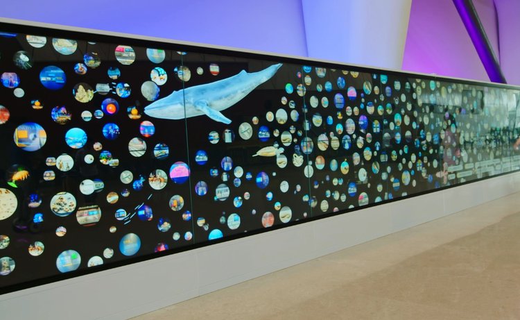 步入國家海洋博物館中央大廳,映入眼簾的是一個長8米、高2米的智慧互動屏。屏幕上,上千張展品照片化身一個個海洋氣泡,組成一面氣泡墻。輕點氣泡,參觀者不僅可以360°瀏覽電子展品,還能觀看知識拓展小視頻,游客可以將感興趣的展品添加到“我的行程單”,掃描二維碼,即可形成定制化游覽線路,實時獲取行程信息,并提供產(chǎn)品導航服務。