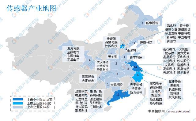 具體來看,長(zhǎng)三角區(qū)域傳感器上市企業(yè)主要分布于江蘇、浙江、上海等地,;珠三角區(qū)域即分布于廣東省;中部地區(qū)主要分布于山西、河南、安徽、湖北等地。傳感器上市企業(yè)地圖如下: