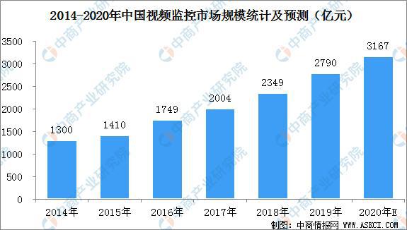 近年來,我國(guó)監(jiān)控系統(tǒng)市場(chǎng)經(jīng)歷了持續(xù)強(qiáng)勁的發(fā)展。其中,視頻監(jiān)控市場(chǎng)的發(fā)展速度超過全球其他地區(qū)。據(jù)數(shù)據(jù)統(tǒng)計(jì),2012-2016年我國(guó)視頻監(jiān)控行業(yè)增長(zhǎng)率均保持在15%以上。2017年,我國(guó)視頻監(jiān)控市場(chǎng)規(guī)模突破2000億元。初步估算2019年,中國(guó)視頻監(jiān)控市場(chǎng)規(guī)模達(dá)到2790億元。中商產(chǎn)業(yè)研究院預(yù)計(jì),到2020年底,全國(guó)視頻監(jiān)控市場(chǎng)規(guī)模將突破3000億元。