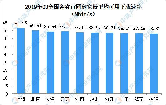 截至2019年第三季度,全國(guó)光纖寬帶用戶占比超過91%,寬帶用戶持續(xù)向高速率遷移,100Mbps及以上接入速率的固定互聯(lián)網(wǎng)寬帶接入用戶已占總用戶數(shù)的80.5%;4G用戶占移動(dòng)電話用戶已達(dá)79.1%,這些指標(biāo)均位居全球前列。固定寬帶下載速率方面,上海、北京、天津位列全國(guó)前三位,且上海、北京已率先超過了40Mbit/s,江蘇、河南緊隨其后。全國(guó)主要城市排行榜上,上海、北京、南京、鄭州、天津位居前五位。