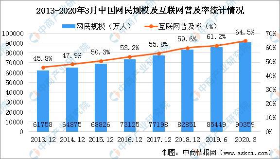 隨著智能手機(jī)的大力推廣和普及,推動(dòng)著移動(dòng)互聯(lián)網(wǎng)市場(chǎng)規(guī)模的進(jìn)一步擴(kuò)張,用戶規(guī)模不斷攀升?;ヂ?lián)網(wǎng)行業(yè)持續(xù)穩(wěn)健發(fā)展,互聯(lián)網(wǎng)已成為推動(dòng)我國(guó)經(jīng)濟(jì)社會(huì)發(fā)展的重要力量。據(jù)《中國(guó)互聯(lián)網(wǎng)絡(luò)發(fā)展?fàn)顩r統(tǒng)計(jì)報(bào)告》數(shù)據(jù)顯示:截至2020年3月28,我國(guó)網(wǎng)民規(guī)模為9.04億,較2018年底新增網(wǎng)民7508萬(wàn),互聯(lián)網(wǎng)普及率達(dá)64.5%,較2018年底提升4.9個(gè)百分點(diǎn)。
