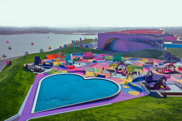 荷蘭花海景區(qū)內(nèi)的愛心水池。 荷蘭花海 圖