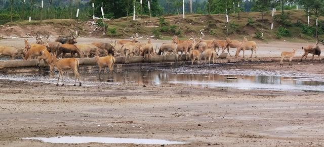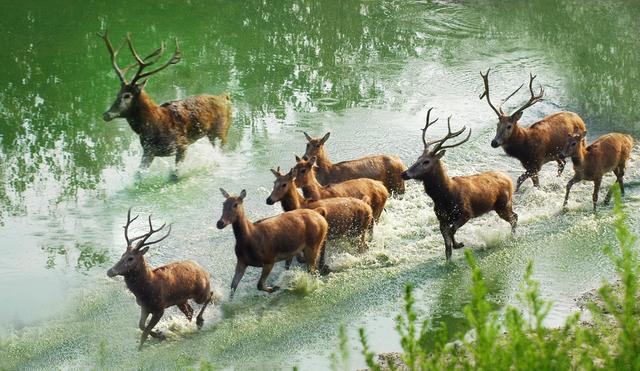 神鹿涉春。 中華麋鹿園 圖