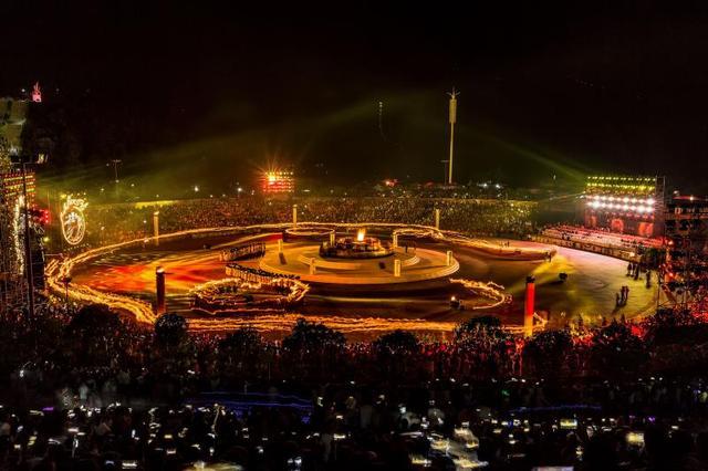 火把廣場占地兩萬四千平方米,包括篝火廣場、觀禮臺、祭火臺、九鼎神柱等。每年農(nóng)歷六月二十四,全國近50萬彝族同胞匯聚于此,舉辦彝族最隆重的節(jié)日——火把節(jié)。由火把廣場、太陽歷廣場、希慕遮廣場、彝族歷史文化博物館(九重宮殿)構(gòu)成的海坪彝族文化園是黔西北彝族文化的博物館、生態(tài)園,是彝族人民交流學習、傳承歷史文化的聚會中心。