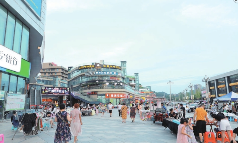 大英縣永逸廣場夜間經(jīng)濟集聚區(qū)人氣旺。