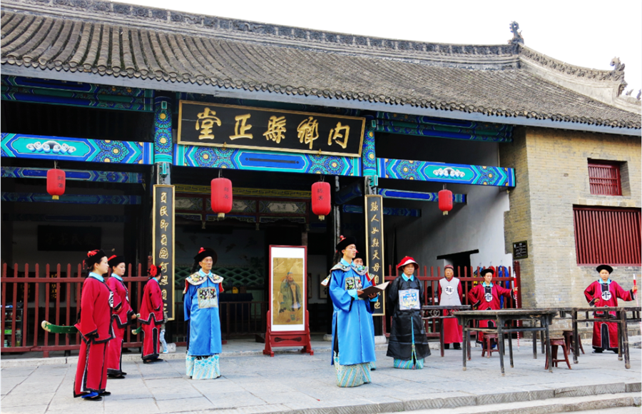 ——拓展提升縣衙景區(qū)文旅融合。內(nèi)鄉(xiāng)縣衙是我國衙署文化研究中心,56個(gè)單體陳列,近6000平方米展覽及豐富多彩文藝表演,可以讓游客領(lǐng)略博大精深的官德文化。特別是每個(gè)匾額、楹聯(lián)語言精練、含義深刻,其中最著名的是三堂前的官德楹聯(lián)“吃百姓之飯,穿百姓之衣,莫道百姓可欺,自己也是百姓;得一官不榮,失一官不辱,勿說一官無用,地方全靠一官”,其豐富的文化內(nèi)涵被專家學(xué)者稱為“一座內(nèi)鄉(xiāng)衙,半部官文化”。近年來,內(nèi)鄉(xiāng)縣衙以文化鑄造景區(qū)靈魂,按照“讓歷史活過來,讓文化動(dòng)起來”的理念,挖掘衙門文化、豐富表演內(nèi)涵,精心推出了《宣講圣諭》、《知縣迎賓》、《知縣審案》、《三院禁約碑揭碑儀式》、《官民同樂》等大型節(jié)目表演,還增加了《知縣縣試》、《知縣招婿》等游客互動(dòng)節(jié)目演出,其建筑文化、匾額文化、廉政文化、禮儀文化、民俗文化、官德文化等深受游客青睞。