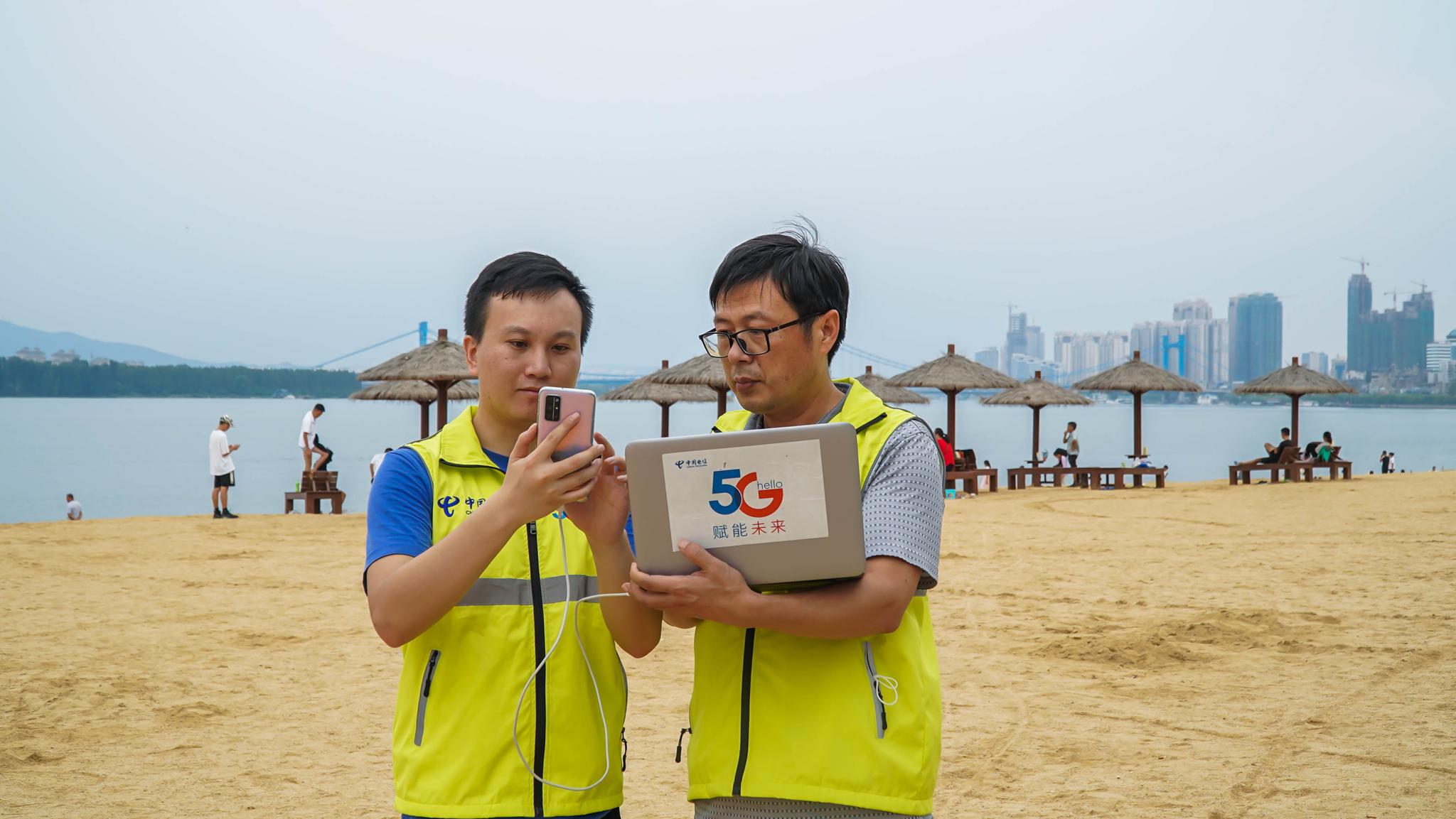 “我們采用的是5G SA(獨立組網(wǎng))網(wǎng)絡(luò),覆蓋區(qū)域的下行體驗速率可達1Gbps,上行體驗速率可達300Mbps。簡單地說,下載一部1G大小左右的電影,只需要不到10秒?!敝袊娦畔尻柗止揪W(wǎng)絡(luò)優(yōu)化專家張清成介紹,目前已在魚梁洲建設(shè)5G基站8個,基本實現(xiàn)了環(huán)島景觀帶5G信號全覆蓋。