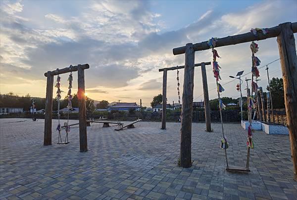 漸漸駛離延吉西站,窗外的稻田郁郁蔥蔥,一叢叢青磚黛瓦的朝鮮族民居鑲嵌在延綿起伏的山巒之間。車子離開公路,駛入一條蜿蜒曲折的鄉(xiāng)路,路旁的住房多了起來,裊裊炊煙也開始生動具體,我們慢慢進入了龍井市。