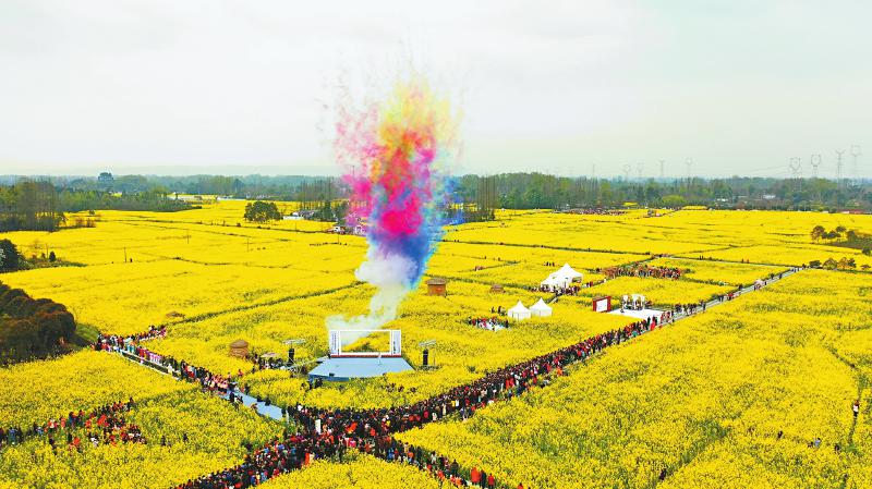 作為農(nóng)商文旅融合的典范項目,七里詩鄉(xiāng)是石羊鎮(zhèn)打造的鄉(xiāng)村游景點,囊括了金龍、七里兩大社區(qū),5700余畝土地,有“中國田園詩歌小鎮(zhèn)”之稱,是省級非遺“柳街薅秧歌”實景演出地,也是首屆中國農(nóng)民豐收節(jié)全國六個分會場之一?!捌呃镌娻l(xiāng)”綠道將青城灣濕地莊園、游客驛站、稻香生活館、又竹堂等31個旅游點位串珠成線,催生出了“特色鄉(xiāng)村一日游”“七里詩鄉(xiāng)景區(qū)一日游”兩條鄉(xiāng)村旅游精品線路。