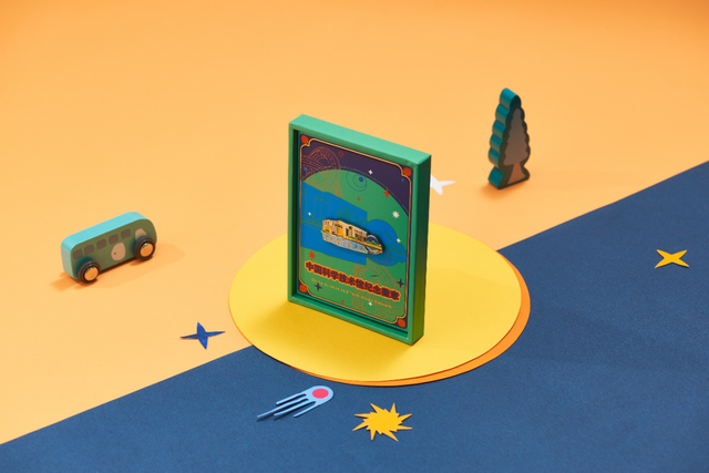 外包裝印著恐龍圖案,有著鮮明清新的色彩,里面其實(shí)是漢堡包;橙紅底色上的螃蟹,馱著老字號中文招牌;淡綠色紅耳龜 " 何小涌 ",龜殼是菠蘿包、杏仁餅;白底藍(lán)字街牌、深綠色垃圾桶模型,對應(yīng)的是澳門日常物件。