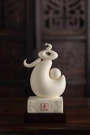 在眾多生肖兔瓷文創(chuàng)產(chǎn)品中,福建省陶瓷藝術大師彭成雄的作品頗具特色。他將生肖文化、陶瓷文化與漢字文化完美融合,設計成一款漢字造型的“中華兔尊”。同時,他還通過瓷雕技藝,將二維的線條、結(jié)構(gòu)以立體的形態(tài)表現(xiàn)出來,更好地展現(xiàn)整體順滑、圓潤、飽滿的視覺效果,并且從造型上呈現(xiàn)一種近似象形文字的趣味感,讓欣賞者產(chǎn)生無限的想象空間。