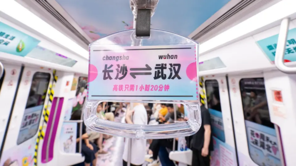 在地鐵“知音號”主題列車上可以看到,專列以湖北歷史文化名人團為脈絡(luò)展開,由張三豐、諸葛亮、周瑜的卡通形象趣味游湖北。專列還推薦了2024湖北熱門旅游線路和夏季避暑勝地。粉色車廂一經(jīng)上線,便引發(fā)全國網(wǎng)友熱議。
