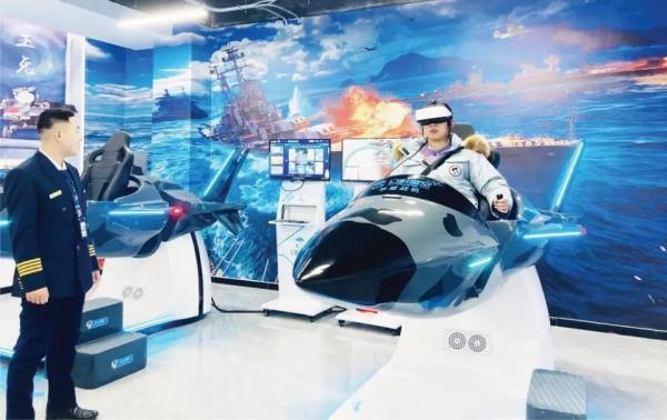 教育基地二樓,只見寬敞明亮的大廳內(nèi)陳列著各種先進(jìn)的模擬設(shè)備,環(huán)繞式的大屏幕,呈現(xiàn)出逼真的飛行場(chǎng)景,讓人仿佛置身于云端之上。這里有裸眼9D飛行影院,160°弧形大屏幕搭配六軸動(dòng)感平臺(tái),可模擬加速、俯沖、搖晃等動(dòng)作,加入吹風(fēng)、噴水、泡泡、雪花等特效,可以帶來視覺、聽覺、觸覺等全方位感官體驗(yàn)。