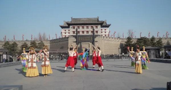 春節(jié)期間,“于闐樂舞”作為新疆和田縣“文旅+演藝”對外輸出的代表,走出新疆,走進(jìn)西安,在西安大唐不夜城、西安城墻景區(qū)、漢長安城未央宮遺址公園、大明宮遺址公園等地為西安市民和游客奉獻(xiàn)了一場場精彩的文化演出,將這一與唐文化密切融合的古老藝術(shù)呈現(xiàn)給廣大觀眾。