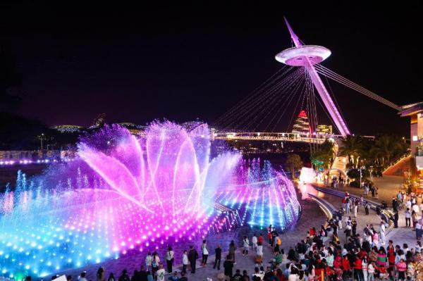 景區(qū)內(nèi)設(shè)有水幕電影噴泉秀、全球美妝博物館、藝術(shù)連廊、環(huán)島觀光木棧道等特色景點(diǎn)。2025年五一期間,C區(qū)廣場更化身為“戶外運(yùn)動街區(qū)”,以海島網(wǎng)球熱力場為核心場景,集結(jié)11家戶外品牌,搭配酒水派對和巡游演繹,打造潮流運(yùn)動新體驗(yàn)。