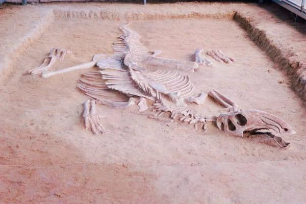 更具突破性的是實(shí)體開發(fā)。6月30日,恐龍遺址公園一期正式免費(fèi)開放。游客手持高鐵票,即可走進(jìn)正陽新城的發(fā)掘現(xiàn)場,在真實(shí)探方間與尚未完全剝離的恐龍骨架“同框”打卡。與此同時(shí),恐龍數(shù)智體驗(yàn)館建設(shè)加速推進(jìn),館內(nèi)將以數(shù)字技術(shù)“復(fù)活”新發(fā)現(xiàn)的恐龍屬種——形象IP“黔多多”。