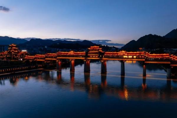 夕陽映照下,濯水古鎮(zhèn)風(fēng)雨廊橋的影子在阿蓬江面拉長。橋上,背著槳板的運(yùn)動(dòng)員與拖著行李箱的高鐵游客擦肩而過;三十公里外,恐龍遺址公園的講解員關(guān)閉展館燈光,最后一批小游客仍圍著“黔多多”全息影像戀戀不舍。當(dāng)恐龍的遠(yuǎn)古足音與高鐵的現(xiàn)代轟鳴在這片土地共鳴,黔江的故事,才剛剛翻開新的篇章。