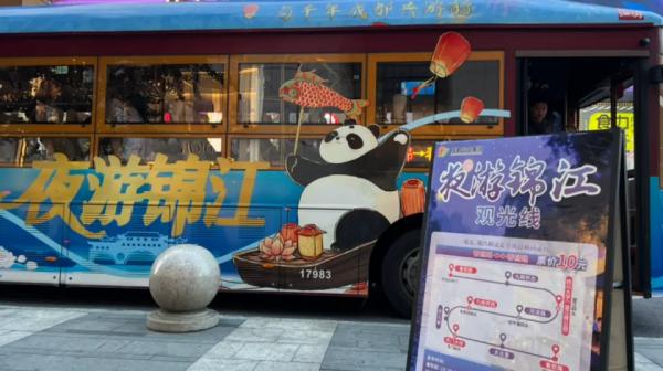 在四川成都,錦江區(qū)的 “夜游錦江觀光巴士”項目全新升級。車身以錦江碧波為底色,融入熊貓、廊橋、詩詞等成都元素,宛如一幅移動的城市文化櫥窗。