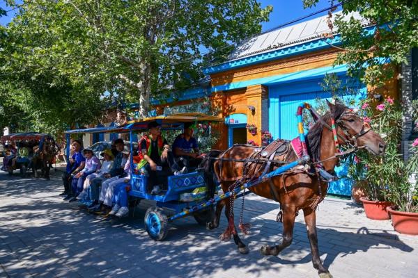 文旅產(chǎn)業(yè)的繁榮最終要回歸到人的獲得感。在喀贊其旅游區(qū),近2萬名居民直接或間接從事旅游業(yè),他們中有人將庭院改造成家訪點,有人駕起盛裝的“馬的”,有人開設(shè)傳統(tǒng)冰淇淋店。當?shù)卣ㄟ^免征稅收、財政承租房屋等政策,扶持上百家手工作坊延續(xù)鐵藝、木雕、馬鞍制作等傳統(tǒng)技藝。
