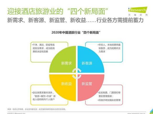 酒店旅游業(yè)逐級(jí)恢復(fù)預(yù)計(jì)將分為冰封期、解凍期、回暖期、重歸增長(zhǎng)期共4個(gè)階段,目前已進(jìn)入解凍期階段。今年中國(guó)酒旅行業(yè)復(fù)蘇將出現(xiàn)四個(gè)新局面,分別為新需求、新客源、新監(jiān)管、新收益。