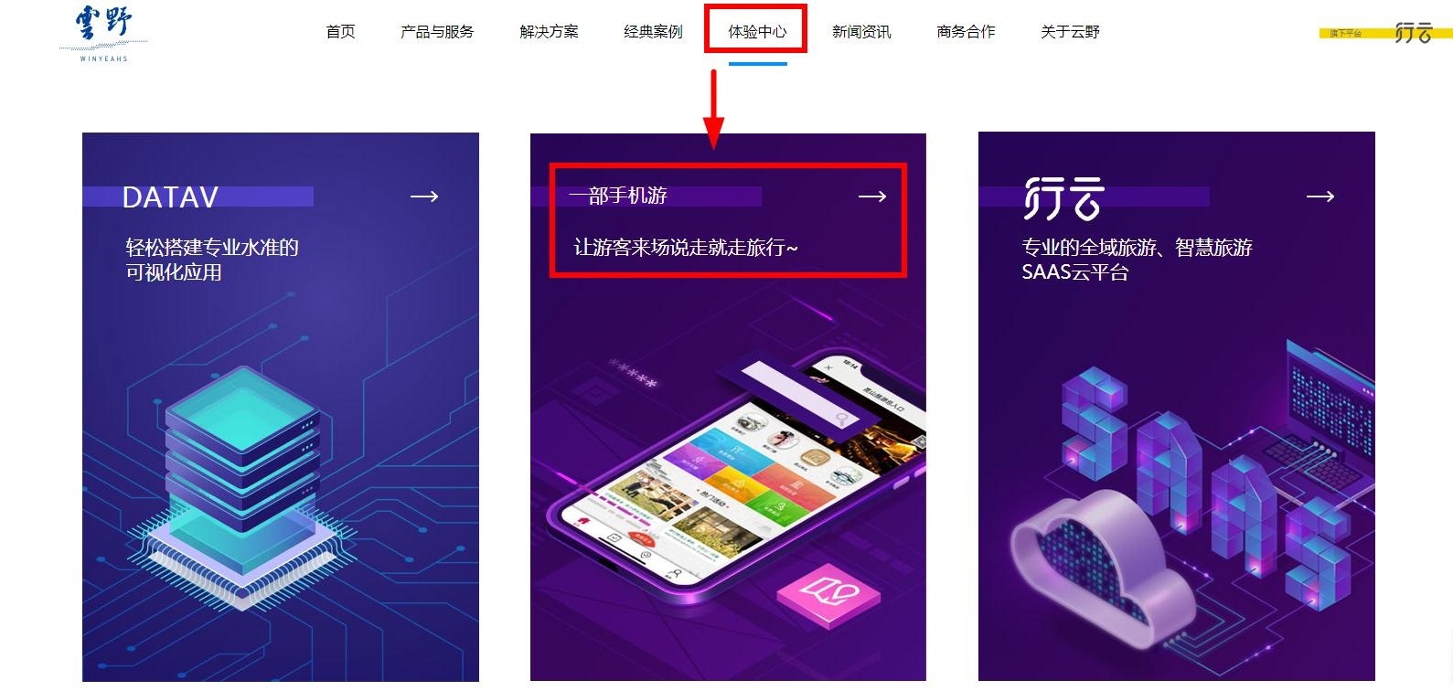下面介紹下云野的“一部手機游”景區(qū)管理平臺軟件特色功能,如需要直接體驗的用戶可登入官網(wǎng)haiqingchun.cn,點擊導(dǎo)航欄“體驗中心”-------- “一部手機游”即可體驗。